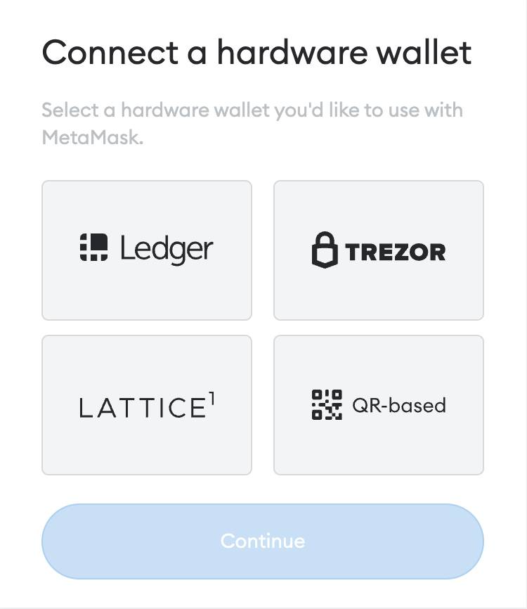 - The browser will ask you to connect the device to Metamask, select your key and click on "Connect".