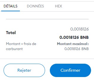 < Vous pouvez voir ici les frais de transaction qui s'appliquent