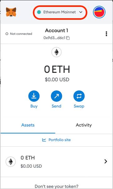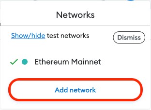 2. Le menu indique "Ethereum Mainnet" si c'est la première fois que vous changez de réseau. Cliquez dessus pour accéder à un menu déroulant et cliquez sur l'onglet "Add Network" pour passer à l'étape suivante.