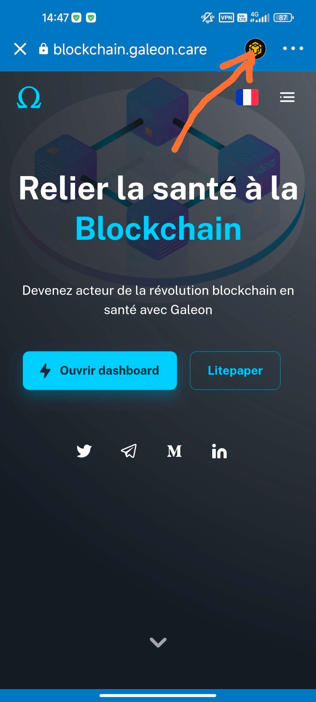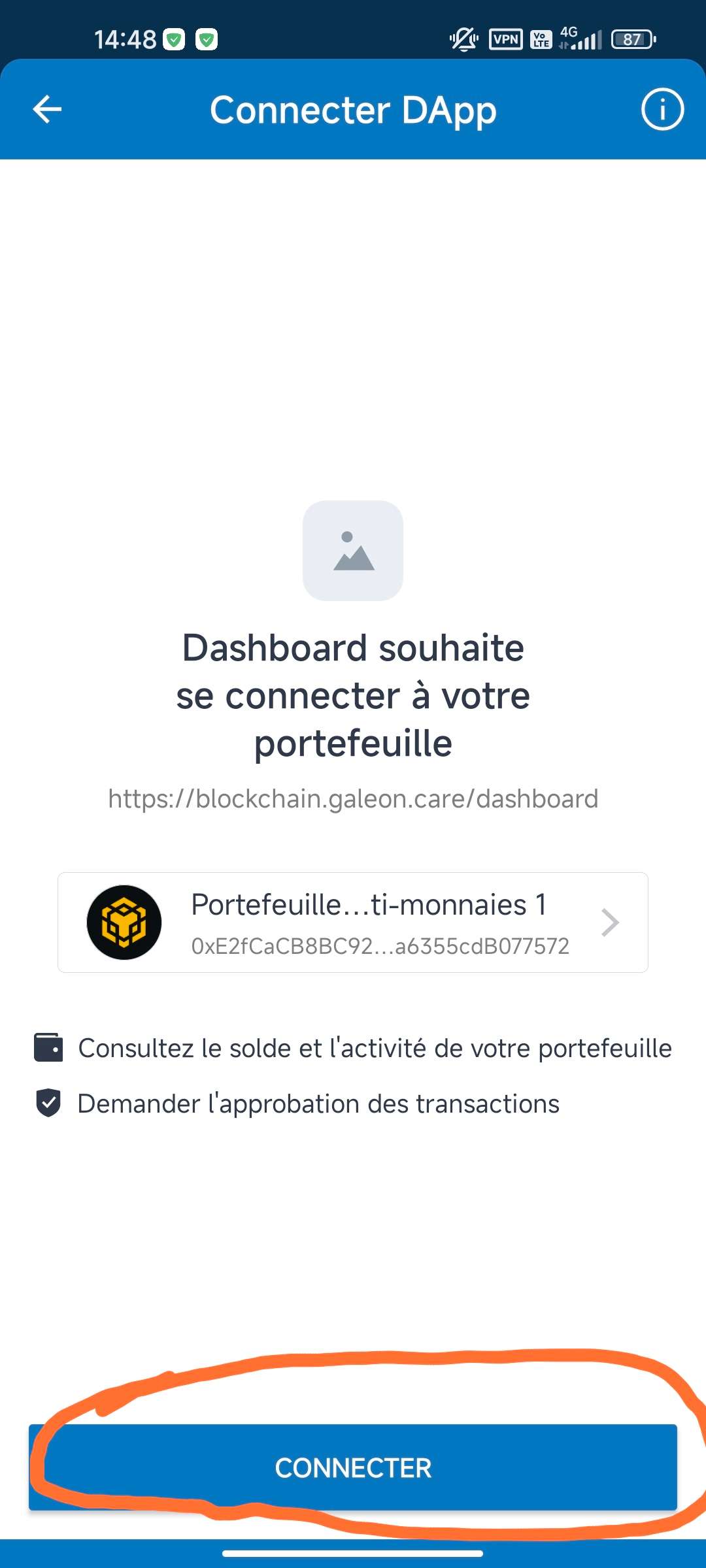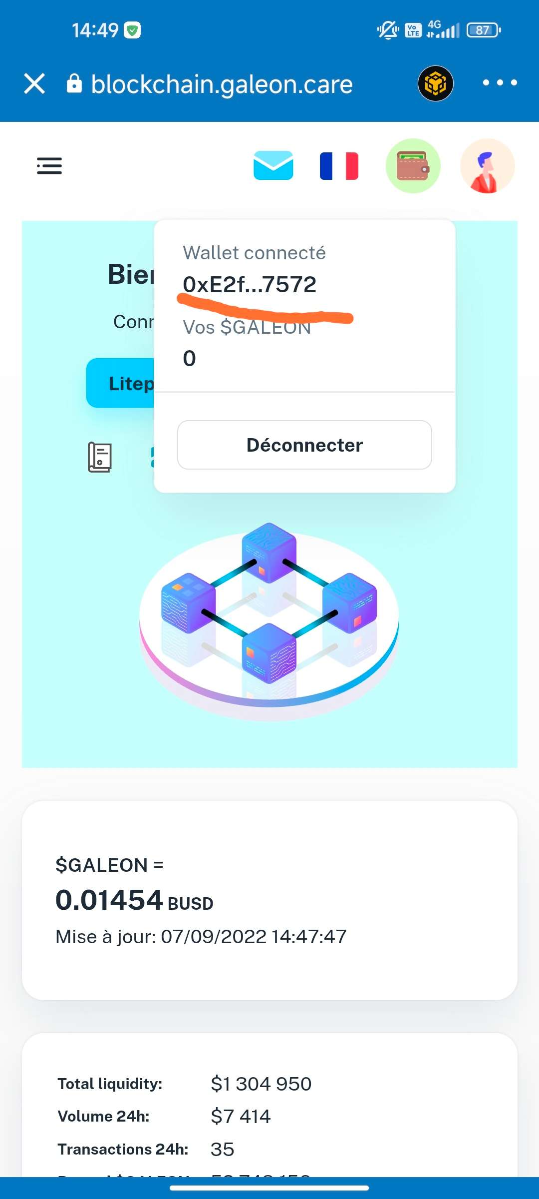 - Utiliser le logo Portefeuille sur le site Galeon, puis la connexion "Metamask"
